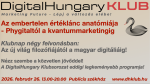 A jövő vizsgálata elképzelhetetlen anélkül, hogy a tapasztalatainkra és tudásunkra támaszkodva időnként filozófiai magaslatokba emelkednénk majd onnan nagy sebeséggel visszazuhannánk a hazai rögvalóság talajára. 2026. február 26. A DigitalHungary Klubsorozat eddigi legkeményebb programja lesz!